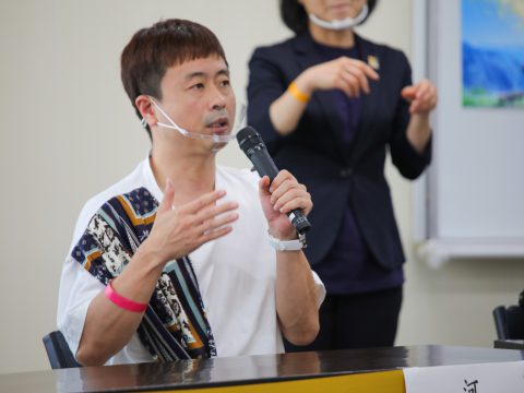 石野理事長:全日本ろうあ連盟はきこえない人たちだけではなく、きこえる人たちとも力を合わせて70年運動を続け、様々な差別や法律と闘ってきた。その苦労を表すのではなく、私たちが目指す共生社会を表す映画を製作した。ぜひ多くの方々に観ていただきたい。